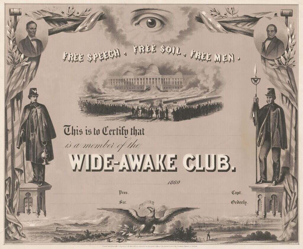 A newspaper christened them the “Wide Awakes,” using a popular term from the 1850s that meant staying alert and on your toes. The New York Times praised its members “young men of character, earnest in their Republican convictions.”
